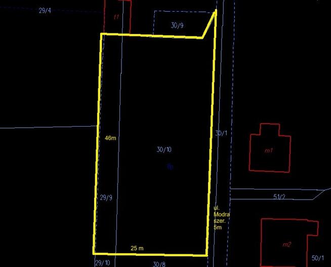 Działka budowlana w kształcie prostokąta o powierzchni 1023m2. Dojazd z drogi gminnej - przez prywatną drogę na ...